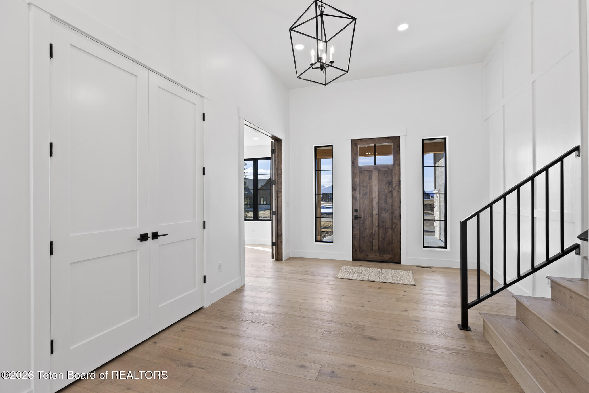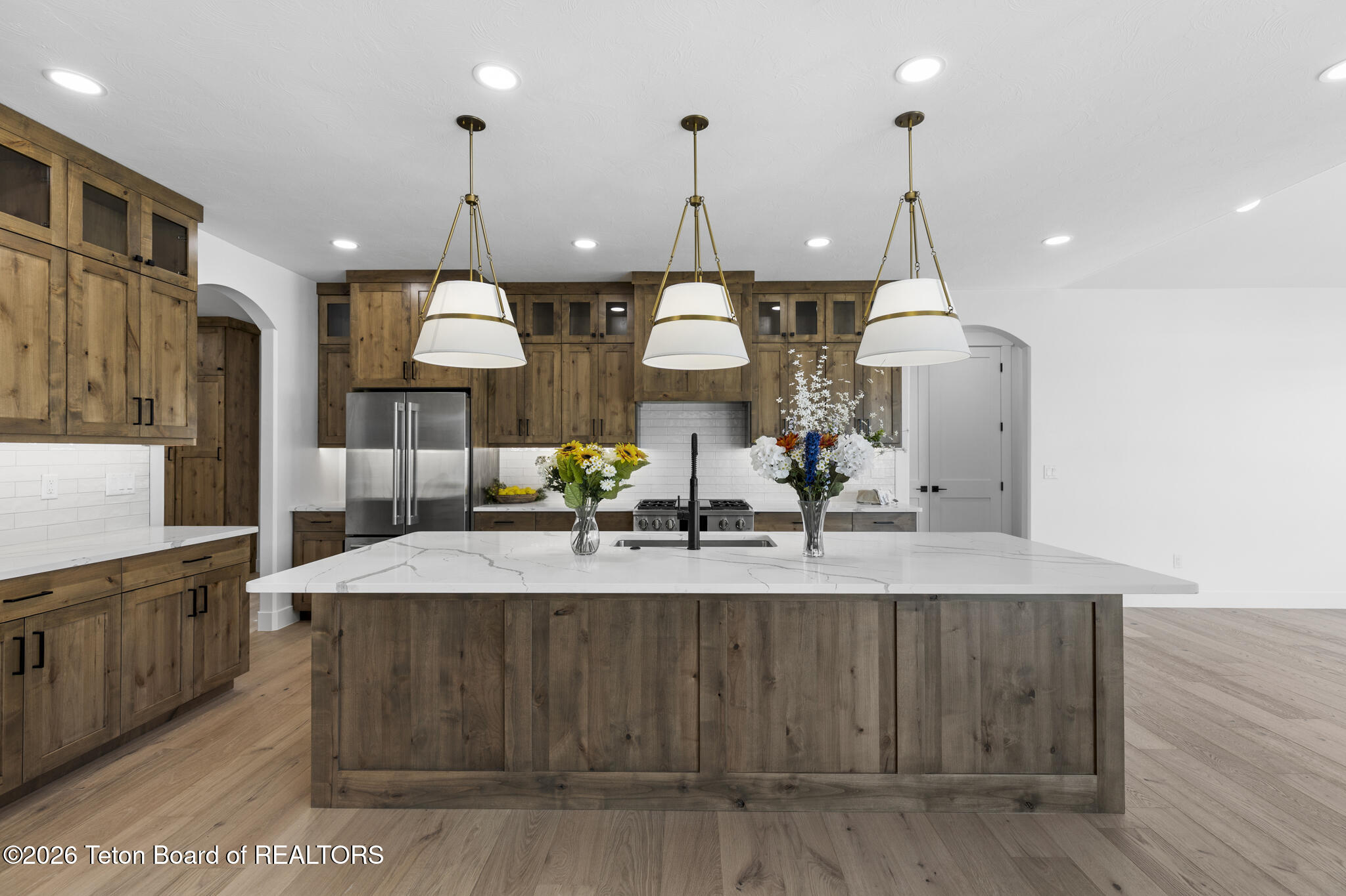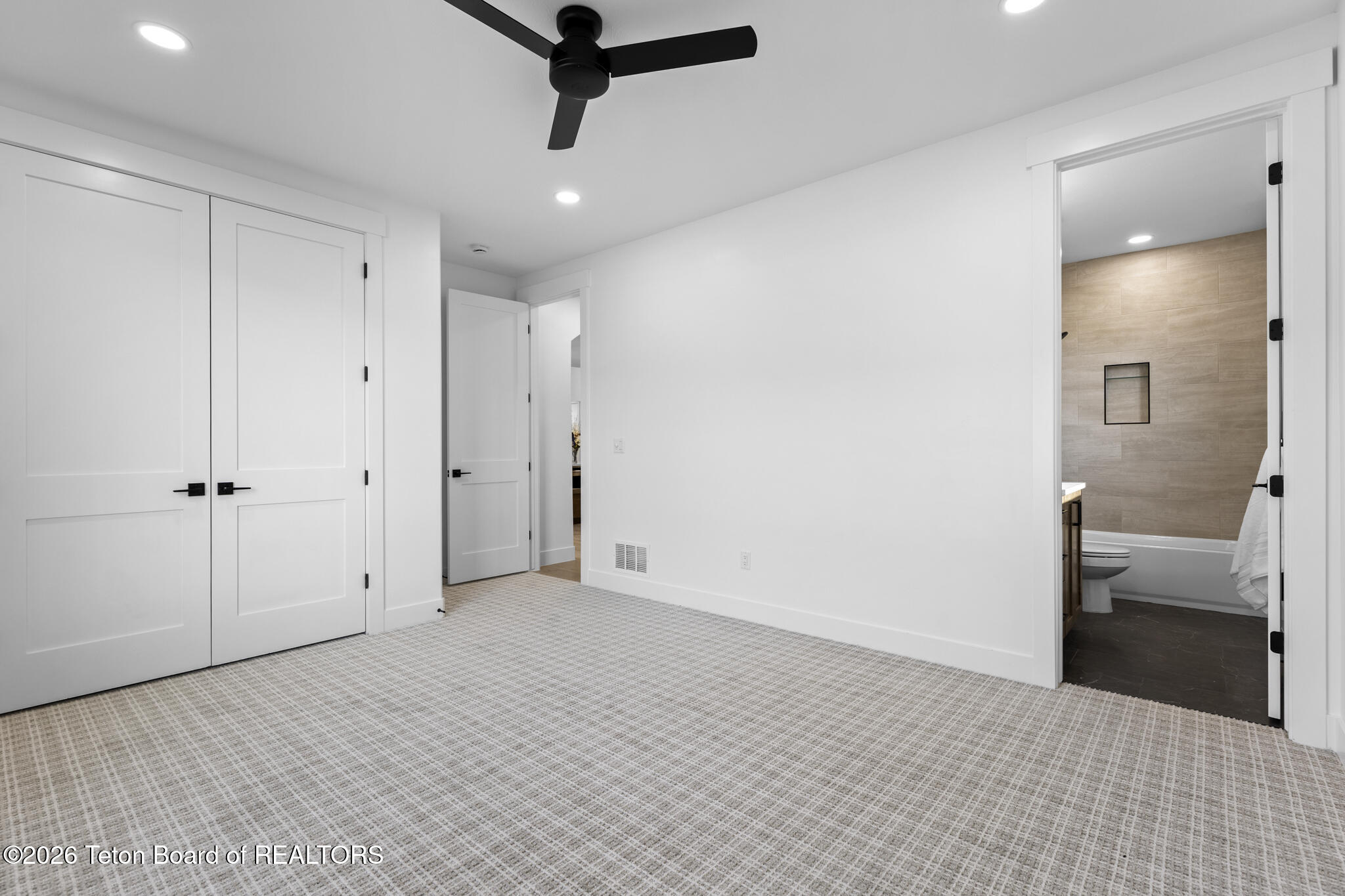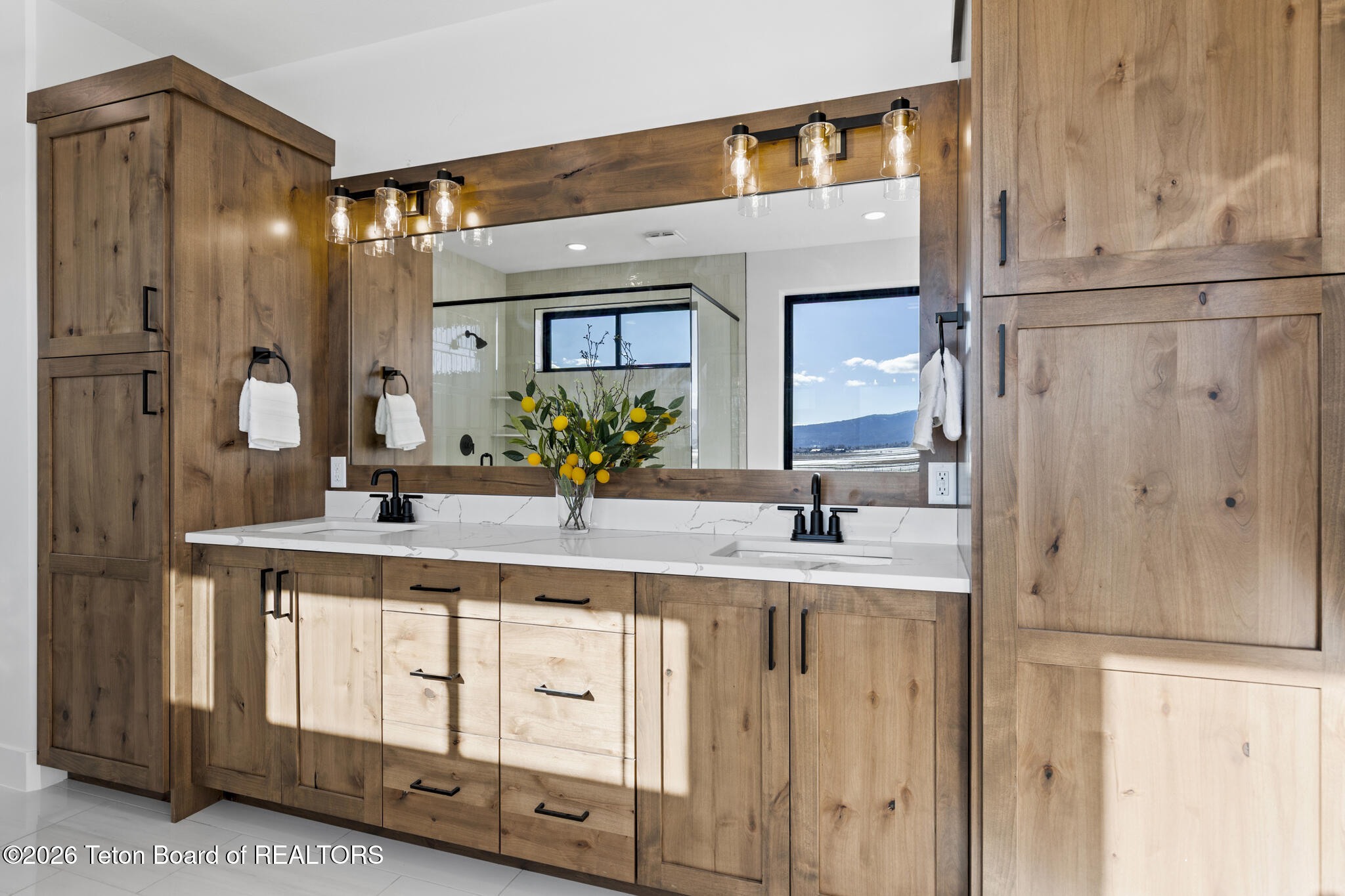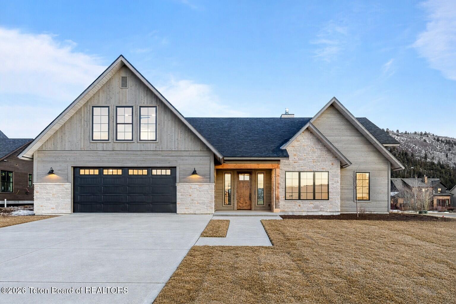 Immerse yourself in the best of Teton Valley living with this beautifully crafted 4-bed, 4.5-bath home in the premier golf community of Teton Reserve, where championship golf, wide-open views and year-round outdoor adventure intersect. At 3,572 square feet, this residence marries quality construction with thoughtful design: rich white oak hardwood floors, sleek quartz countertops, and custom knotty alder cabinetry set the stage for everyday elegance. The heart of the home is a chef's kitchen outfitted with high-end GE Monogram appliances, perfect for Sunday brunches or entertaining friends after a round of golf. The primary suite is a true sanctuary, featuring European porcelain tile, a heated bathroom floor, a large walk-in shower, large soaker tub and an oversized master closet complete with its own washer and dryer for supreme convenience. Every bedroom in the home boasts its own private en-suite, a luxury rarely found outside of resort living. Living and entertaining flow effortlessly between spaces thanks to an open-concept design and a 16-foot slider that blurs indoor and outdoor living as it invites sweeping views, fresh mountain air, and natural light deep into the home. With air conditioning throughout, comfort is guaranteed year-round. Nestled within Teton Reserve's 448+ acres of golf fairways, aspen groves, and open space, homeowners here enjoy panoramic mountain and valley vistas plus easy access to the community's 18-hole championship golf course designed by Hale Irwin. Just minutes from downtown Victor and Driggs, you're perfectly positioned for world-class outdoor recreation -- from early morning tee times and afternoon trail rides to winter powder days at nearby Grand Targhee Resort, fishing on the Teton River, or summer bike tours through iconic Teton landscapes. This home is ideal for those seeking refined comfort, premier golf lifestyle access, and exceptional quality in one of Idaho's most desirable communities.