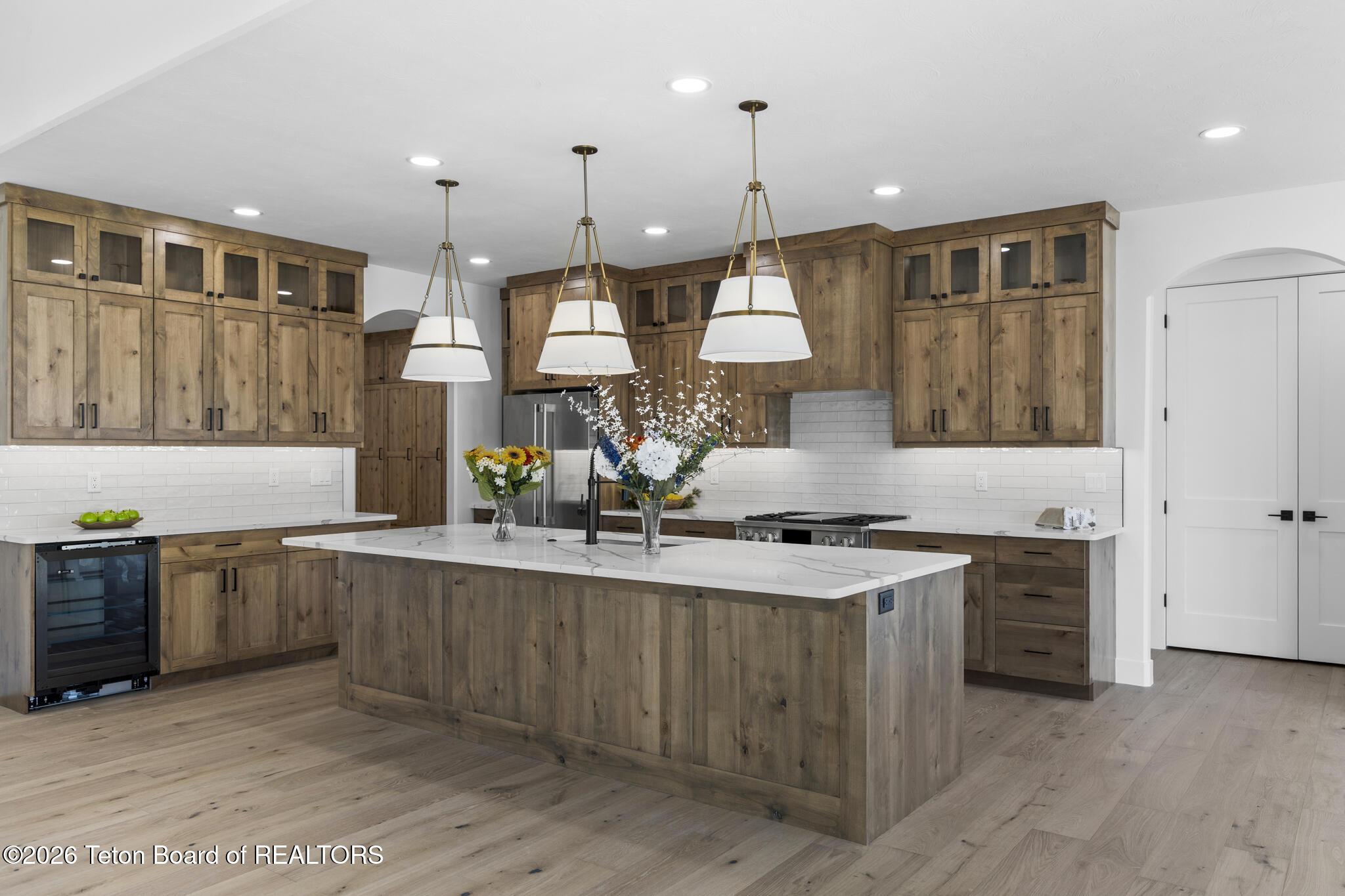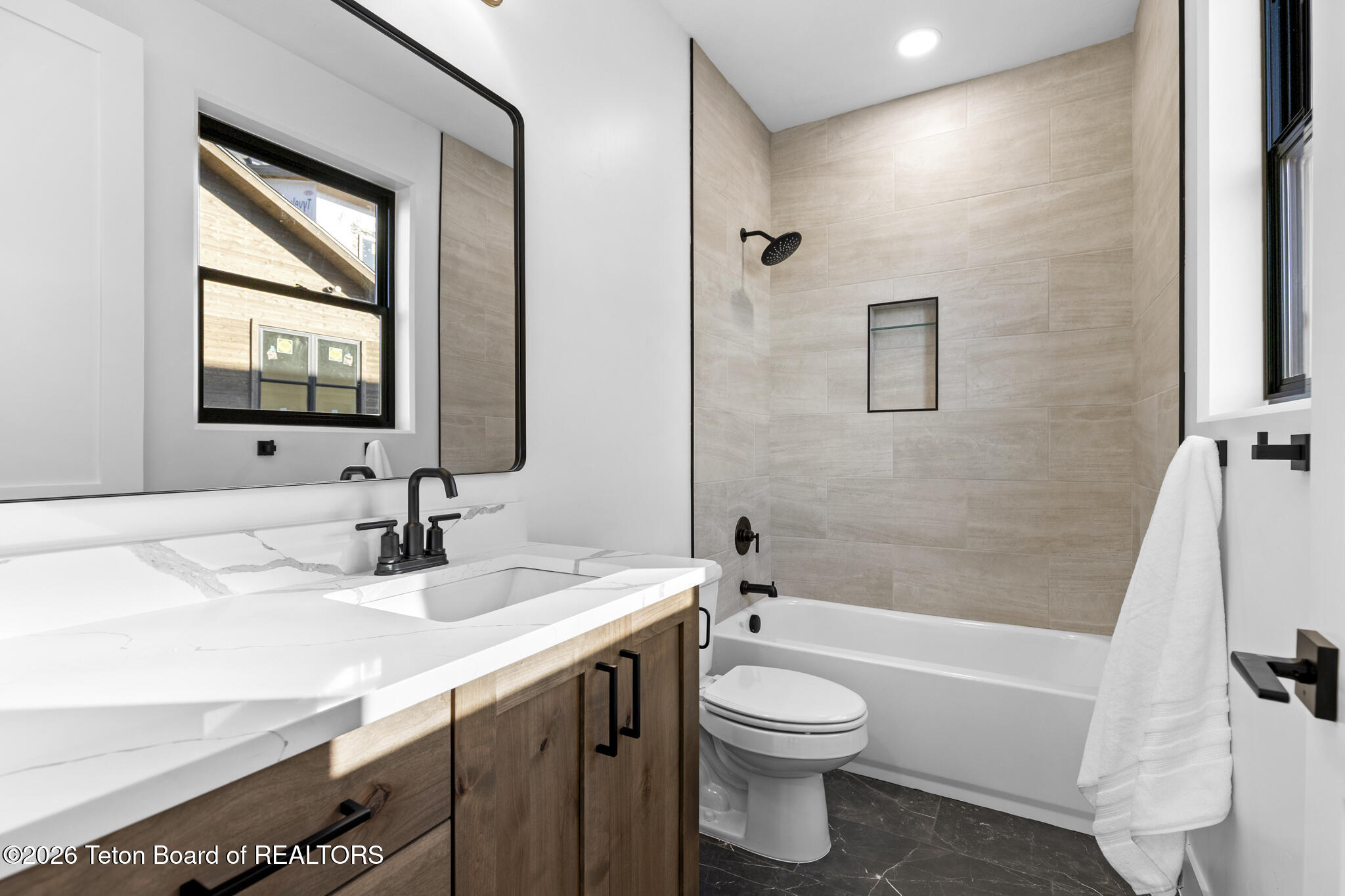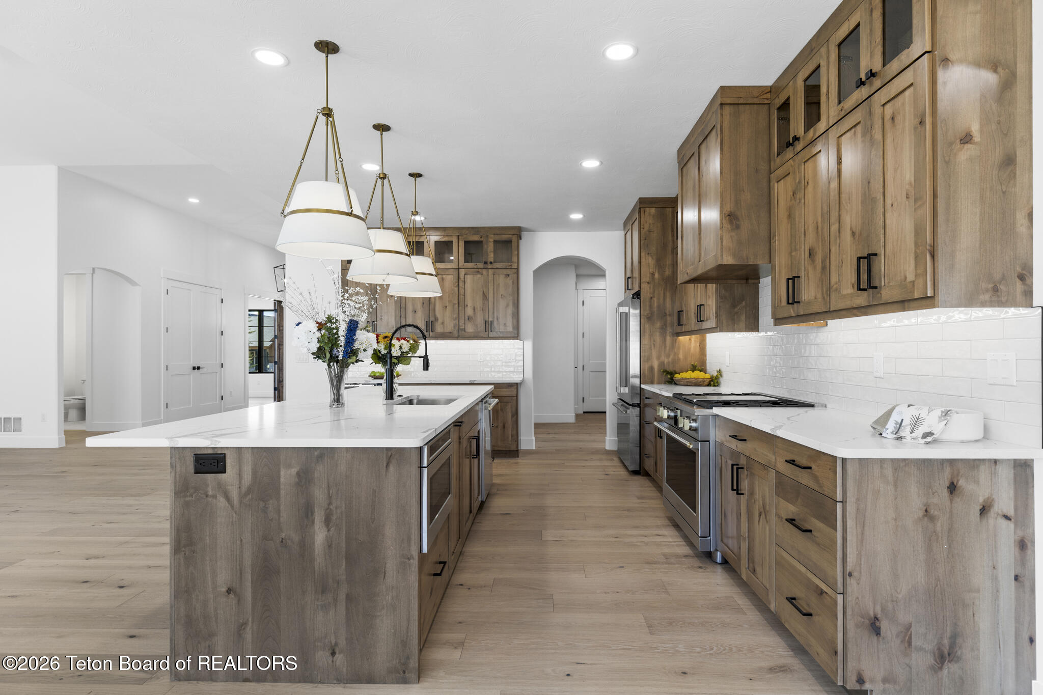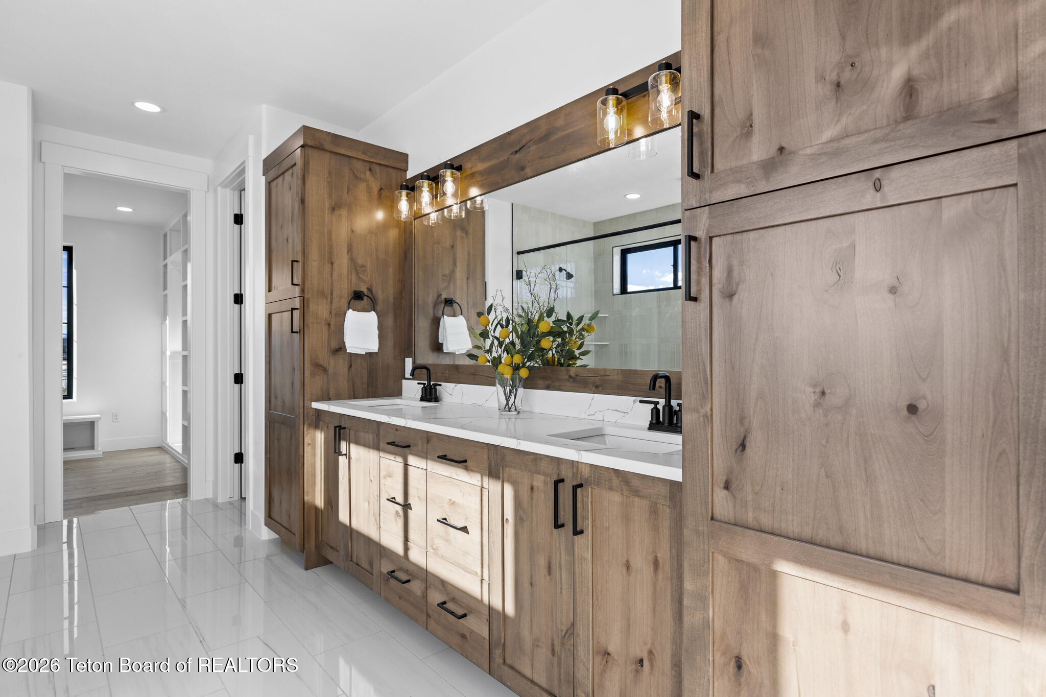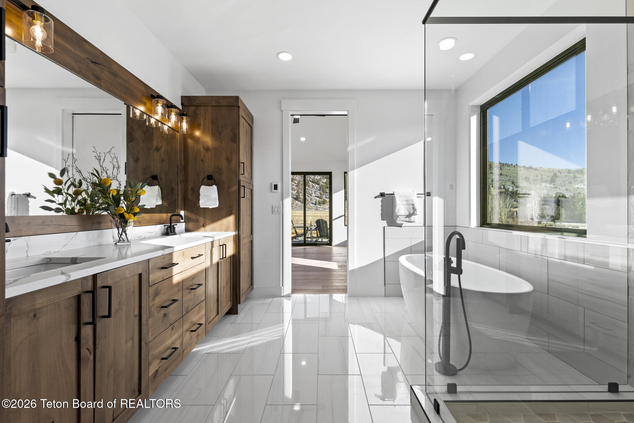 Immerse yourself in the best of Teton Valley living with this beautifully crafted 4-bed, 4.5-bath home in the premier golf community of Teton Reserve, where championship golf, wide-open views and year-round outdoor adventure intersect. At 3,572 square feet, this residence marries quality construction with thoughtful design: rich white oak hardwood floors, sleek quartz countertops, and custom knotty alder cabinetry set the stage for everyday elegance. The heart of the home is a chef's kitchen outfitted with high-end GE Monogram appliances, perfect for Sunday brunches or entertaining friends after a round of golf. The primary suite is a true sanctuary, featuring European porcelain tile, a heated bathroom floor, a large walk-in shower, large soaker tub and an oversized master closet complete with its own washer and dryer for supreme convenience. Every bedroom in the home boasts its own private en-suite, a luxury rarely found outside of resort living. Living and entertaining flow effortlessly between spaces thanks to an open-concept design and a 16-foot slider that blurs indoor and outdoor living as it invites sweeping views, fresh mountain air, and natural light deep into the home. With air conditioning throughout, comfort is guaranteed year-round. Nestled within Teton Reserve's 448+ acres of golf fairways, aspen groves, and open space, homeowners here enjoy panoramic mountain and valley vistas plus easy access to the community's 18-hole championship golf course designed by Hale Irwin. Just minutes from downtown Victor and Driggs, you're perfectly positioned for world-class outdoor recreation -- from early morning tee times and afternoon trail rides to winter powder days at nearby Grand Targhee Resort, fishing on the Teton River, or summer bike tours through iconic Teton landscapes. This home is ideal for those seeking refined comfort, premier golf lifestyle access, and exceptional quality in one of Idaho's most desirable communities.