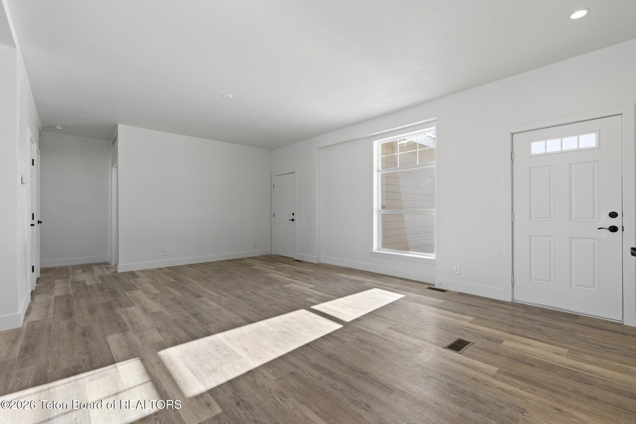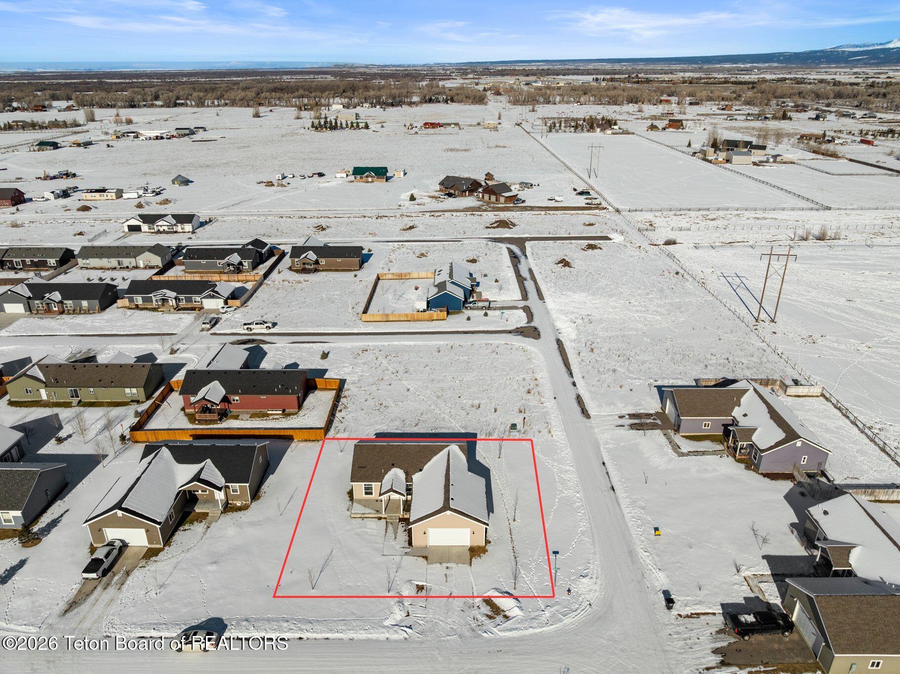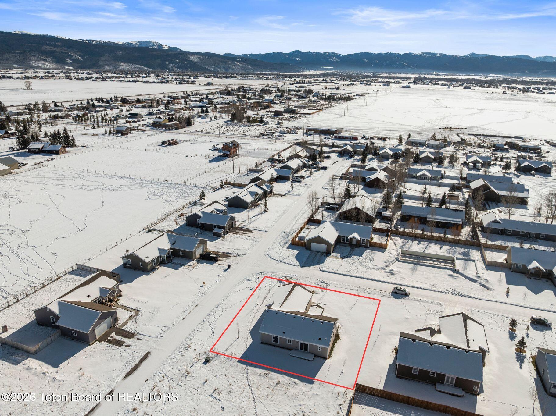 Located between Driggs and Victor with Big Hole Mountain views, this 2024-built home hits the sweet spot for modern comfort and easy living. The open floor plan is designed for everyday functionality and features a smart split-bedroom layout, with the master suite on the opposite side of the home from the two guest bedrooms adding privacy. Step out back to the deck, perfect for summer BBQs, soaking up the sun, and taking in the scenery. The fully landscaped yard includes a sprinkler system, trees, and a sidewalk leading to the front door and large patio, adding convenience and curb appeal. The master suite offers a large bedroom, en-suite bath w/ double vanity, and a walk-in closet. Two additional bedrooms and a full bath provide plenty of space for family, guests, or a home office. The attached two-car garage keeps you out of the weather and leaves room for all the Idaho toys. Located in a neighborhood with paved roads and a park, this home blends clean, modern living with the outdoor lifestyle Teton Valley is known for.